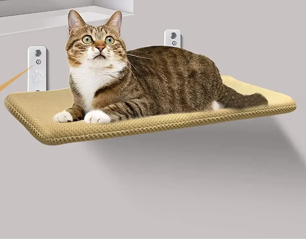 Elevate your cat’s resting area, by liberating floor space and reducing clutter. This perch allows your cat to unwind and watch over their environment, helping to ease stress. It provides a cozy spot for it to enjoy the warmth of the sunlight and relax.