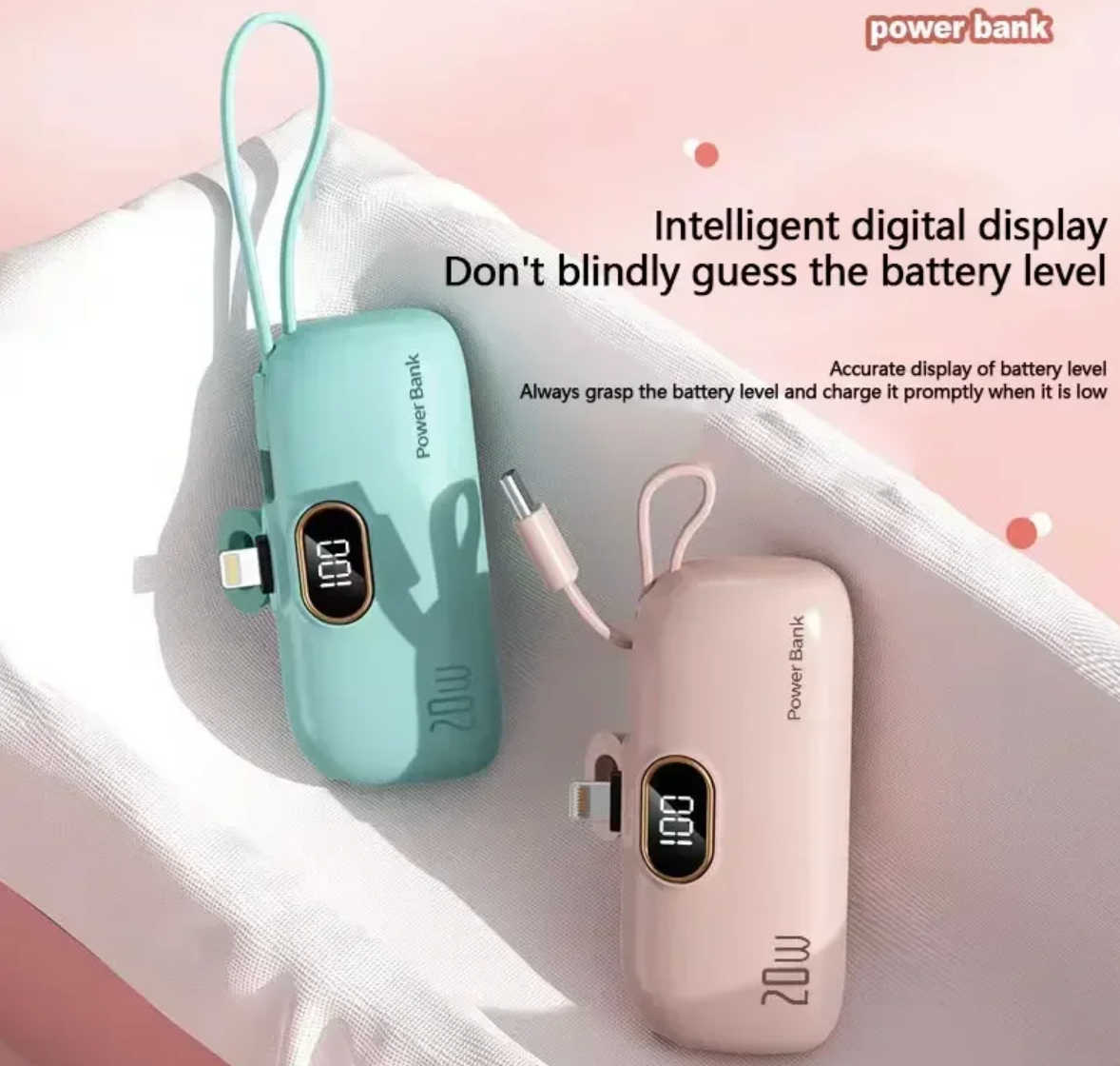 This charger features a built-in USB C cable for direct phone connection, no need for extra cables. Compact and lightweight like a lipstick, it fits easily in your pocket or purse and weighs only 92 grams. Ideal for on-the-go charging, this mini charger keeps your devices powered during commutes, travel, or daily outings.