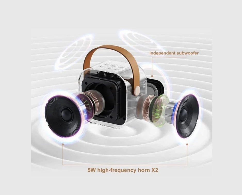 This mini karaoke machine features Bluetooth 5.0 for quick, stable device pairing and is compatible with smartphones, iPads, and PCs. It supports TF cards, has a headphone jack, and includes a wireless microphone that works up to 32 feet away. Offering high-fidelity sound and professional audio effects, it has a premium leather handle, making it highly portable and easy to use on-the-go.